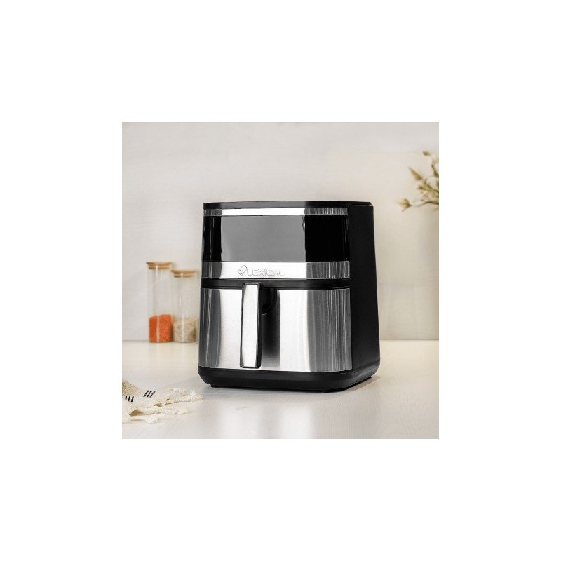 Friteuse à Air Chaud Sans Huile Lexical - Puissance : 1800 Watts - Capacité : 8 Litres - 7 fonctions de cuisson préréglées - Minuterie réglable : 30 minutes - Arrêt automatique - Réglage de la température de chauffe : 80 – 200°C - Couleur: Noir - Garantie : 1 an